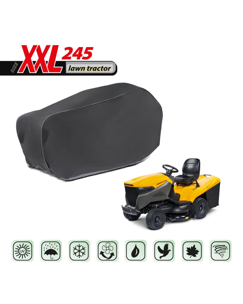 Całoroczny pokrowiec do ochrony spalinowego traktorka ogrodowego przechowywanego na zewnątrz przed niekorzystnym wpływem środowiska. Dzięki specjalnej konstrukcji woda podczas deszczu spływa po pokrowcu nie wnikając pod pokrowiec, a para wodna odprowadzana jest na zewnątrz. Chroni traktorek przed deszczem, śniegiem, szronem i promieniami słonecznymi (szkodliwym UV) oraz zanieczyszczeniami jak pył, ptasie odchody i soki z drzew. Ogranicza korozję i starzenie się elementów z tworzyw sztucznych, chroni przed blaknięciem i matowieniem lakieru oraz elementów chromowanych. Pokrowiec jest w pełni odporny na wszystkie warunki atmosferyczne.